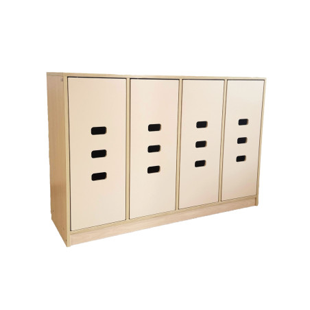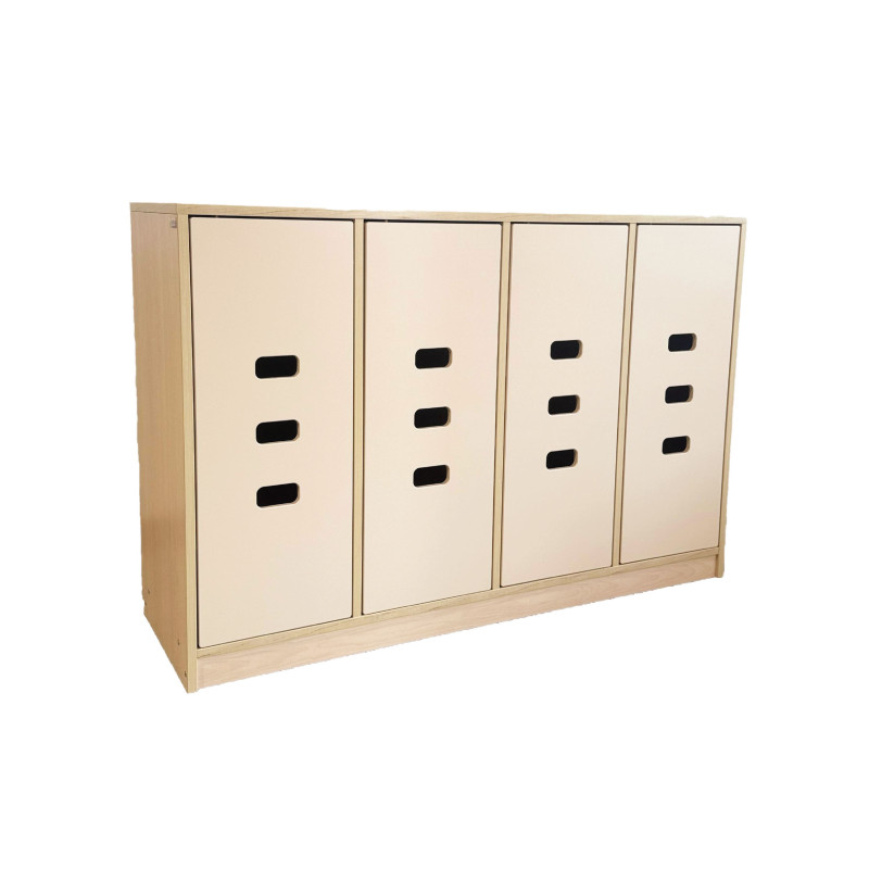Il colore naturale lo rende adattabile a qualsiasi colore e tema dell' ambiente. I divisori verticali creano 4 spazi separati corredati di vano con gancio e vano portascarpe.