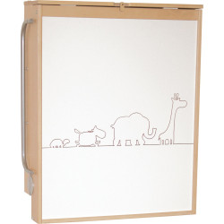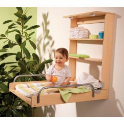 Realizzato in legno naturale, completo di materassino idrorepellente rivestito in poliuretano e 2 mensole, con dispositivo di sicurezza di rallentamento dell'apertura. Fissaggio a parete. Chiuso occupa pochissimo spazio. Carico massimo 15 kg.