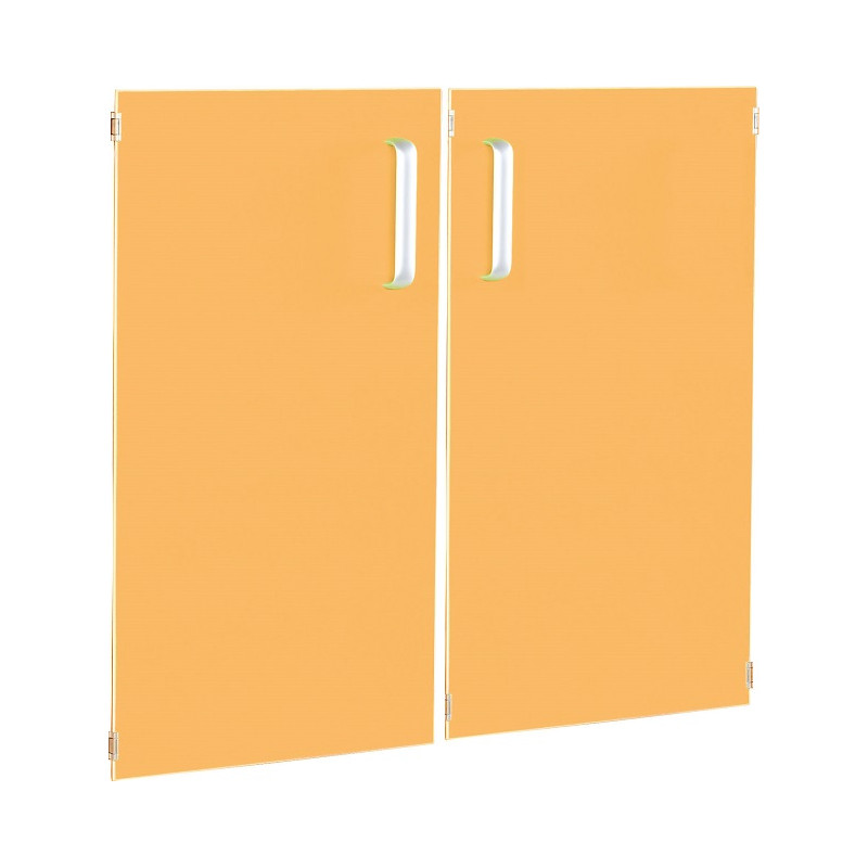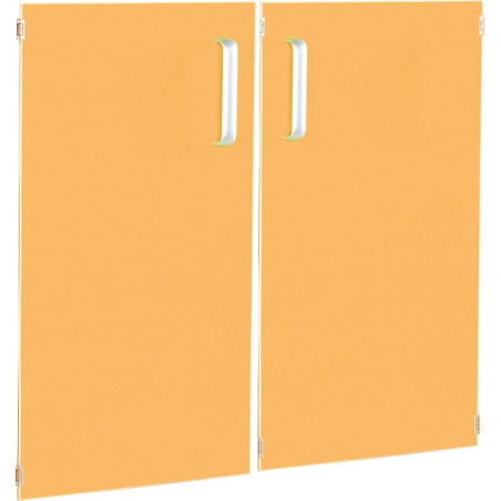 Ante realizzate in conglomerato nobilitato ligneo laminato, di color Arancio. Per mobili M giorno - Simply, complete di maniglie. 1 Coppia di Ante.