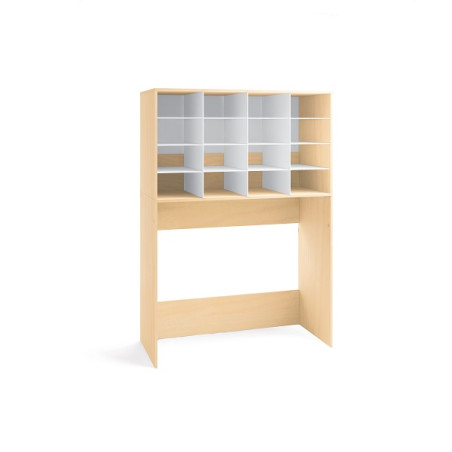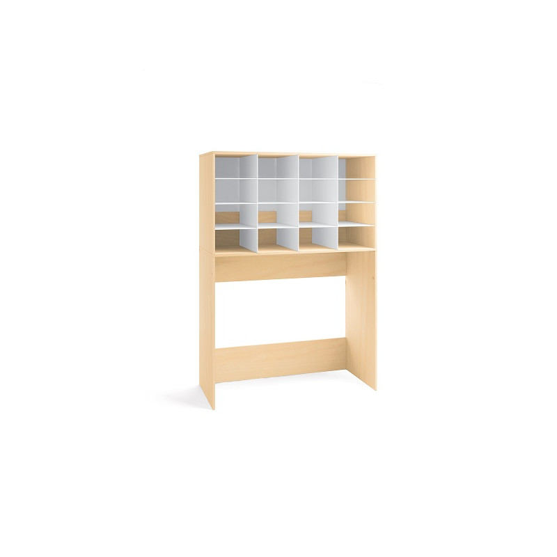 La struttura dell'armadio è realizzata in conglomerato nobilitato ligneo di betulla spessore 18 mm. Nella parte superiore, l'armadio dispone di 16 ripiani in pannelli MDF bianchi, spessore 6 mm.