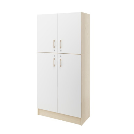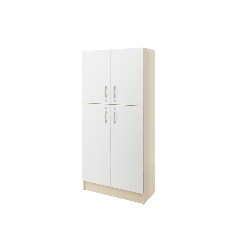 Armadio realizzata in conglomerato ligneo spessore 18 mm, finitura Bianco (struttura betulla). Dotato di 4 ante con serratura edi 5 ripiani interni regolabili.