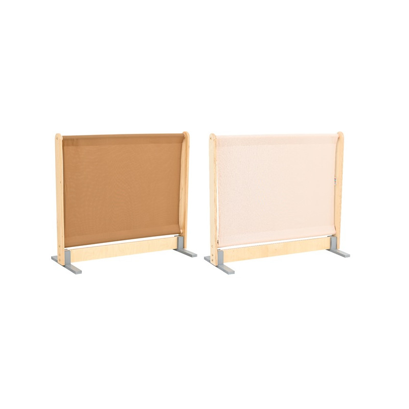 I divisori colorati permettono di dividere lo spazio e possono avere una funzione decorativa. Sono bifacciali, disponibili in due tonalità o due colori. La cornice è inclusa. Realizzati in tessuto di poliestere. Dim.: 92x30x77 cm