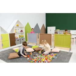 I divisori colorati permettono di dividere lo spazio e possono avere una funzione decorativa. Sono bifacciali, disponibili in due tonalità o due colori. La cornice è inclusa. Realizzati in tessuto di poliestere. Dim.: 92x30x77 cm