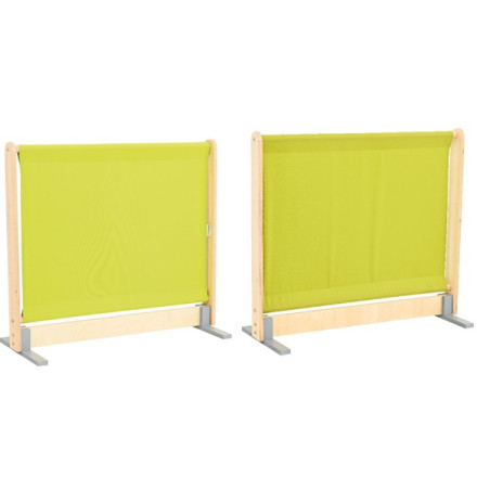 I divisori colorati permettono di dividere lo spazio e possono avere una funzione decorativa. Sono bifacciali, disponibili in due tonalità o due colori. La cornice è inclusa. Realizzati in tessuto di poliestere. Dim.: 92x30x77 cm