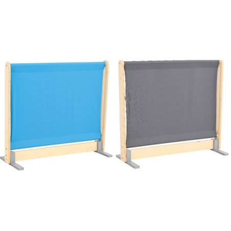 I divisori colorati permettono di dividere lo spazio e possono avere una funzione decorativa. Sono bifacciali, disponibili in due tonalità o due colori. La cornice è inclusa. Realizzati in tessuto di poliestere. Dim.: 92x30x77 cm