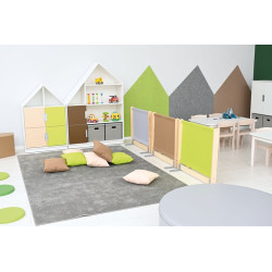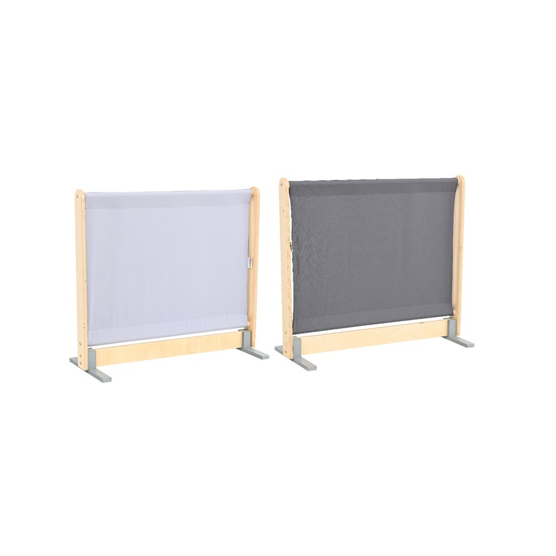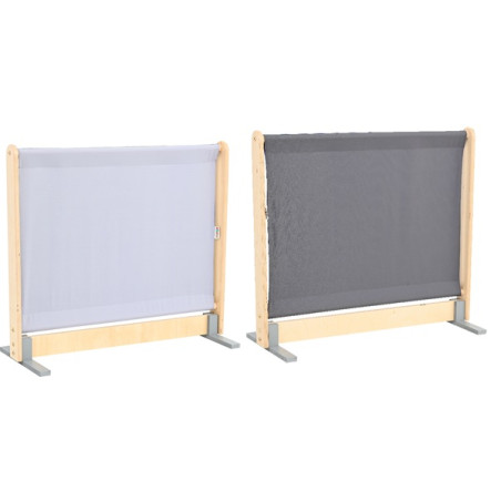 I divisori colorati permettono di dividere lo spazio e possono avere una funzione decorativa. Sono bifacciali, disponibili in due tonalità o due colori. La cornice è inclusa. Realizzati in tessuto di poliestere. Dim.: 92x30x77 cm