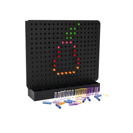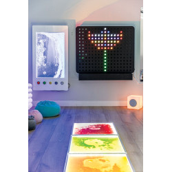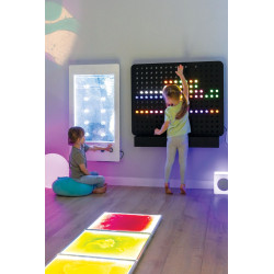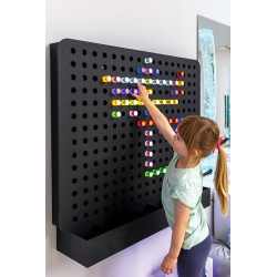 Pannello interattivo da parete che si illumina con luce colorata quando un piolo viene inserito in uno dei fori. Progettato per attività educative e terapeutiche, favorisce la stimolazione sensoriale e l’apprendimento attraverso il gioco attivo. La struttura è resistente, sicura e progettata per uso intensivo. Superficie facilmente lavabile con panno umido. 64 pioli colorati inclusi, 238 fori.. Alimentazione: bassa tensione CC 12 V. Dim: 100x20x80 cm