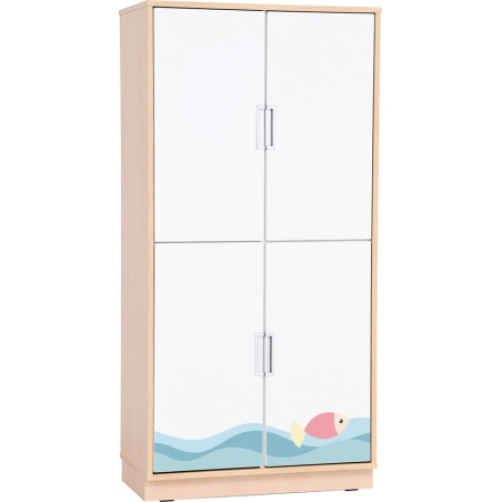 Armadio realizzato in laminato,sp. 18 mm, finitura acero. Spigoli arrotondati e bordi in profilo ABS antiurto. Ante e decori sp. 18 mm. Con la tematica ispirata alla natura, i colori tenui e le pantografie, stimola la fantasia dei bambni ed è particolarmente indicata per i più piccini. Dim.: 79,20x41,50x161,60 cm
