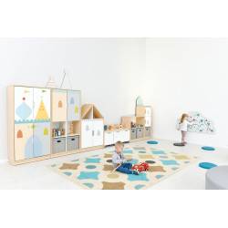 Armadio con 3 ripiani, divisorio e ante con chiusura ammortizzata. Realizzato in laminato da 18 mm di spessore, in tonalità acero. Dim.: 79,20x41,50x161,60 cm.