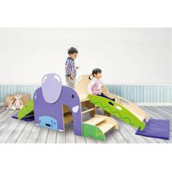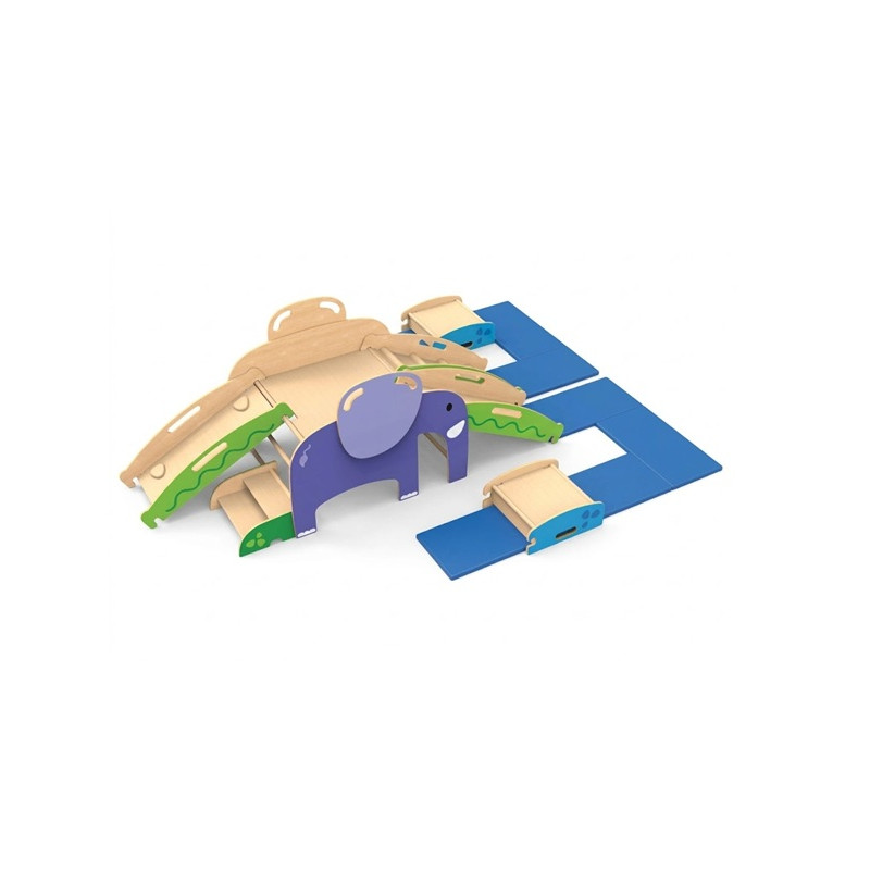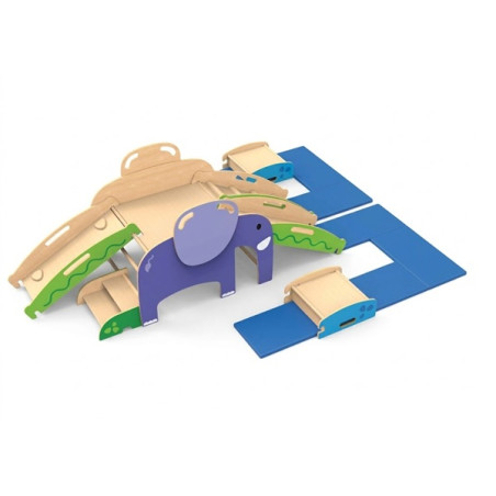 Struttura modulare per arrampicata progettata per supportare lo sviluppo motorio e la coordinazione dei bambini a partire da 2 anni. Il design a tema giungla stimola il gioco attivo, favorisce la cooperazione tra i bambini e contribuisce allo sviluppo delle capacità fisiche. I tappeti blu inclusi possono essere collegati facilmente grazie ai magneti integrati, permettendo una configurazione stabile e modulare. Dim.: 116×100×95 cm.