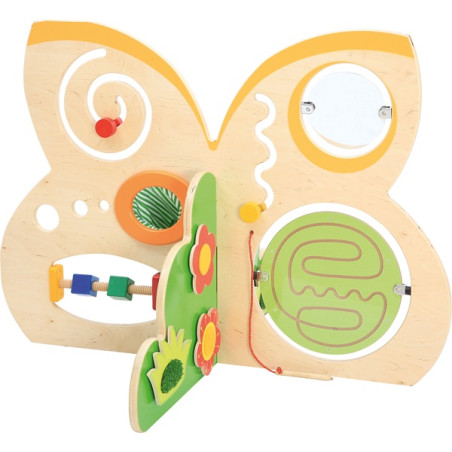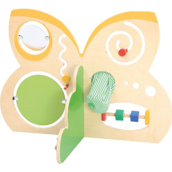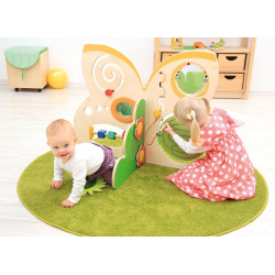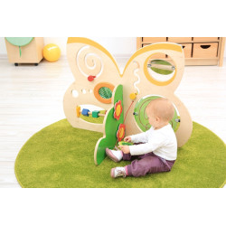 L’angolo manipolativo multifunzionale è progettato per stimolare la curiosità e lo sviluppo sensoriale dei bambini. Realizzata in legno e componenti sensoriali. La struttura offre numerose opportunità di gioco di destrezza: è possibile spostare elementi in legno, ruotare forme lungo un bastone, guidare una pallina su una pista magnetica con l’aiuto di un bastoncino e riconoscere forme nascoste all’interno di una tasca tattile. Inoltre, l’angolo è arricchito da applicazioni sensoriali con texture differenti che favoriscono l’esplorazione tattile e l’esperienza sensoriale. Dim.:98x88x72 cm