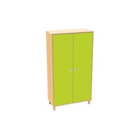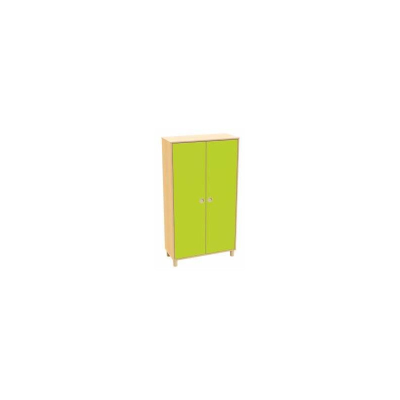 Mobile ad ante con 3 ripiani interni regolabili. Realizzato in legno agglomerato ecologico nobilitato in classe E1 di spessore 18 mm, ignifugo cl. 2, finitura betulla con bordature perimetrali in ABS multirigato a profili e spigoli arrotondati. Schienale in MDF di spessore 5 mm, classe E1, laminato magnolia su entrambe le facce. Le ante sono dotate di maniglia ad incasso e cerniere con apertura a 110°. Alla base piedi cilindrici in massello di faggio con puntale in plastica, per facilitare la pulizia. Tutti i componenti sono riciclabili al 100%. Dim. cm 90x40x180h.