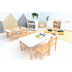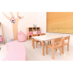 La Sedia è realizzata in legno di faggio naturale e compensato, verniciato con idropitture ecologiche. La lavorazione di alta qualità garantisce un uso a lungo termine e il colore caldo animerà qualsiasi stanza. Oltre al comfort di seduta, la sedia garantisce una piacevole sensazione tattile grazie alla superficie satinata al tatto della seduta e dello schienale. Le estremità arrotondate del telaio in legno non rappresentano un rischio di lesioni o infortuni ai bambini che la utilizzano. Altezza seduta: 31 cm. Dimensioni:30x37x58h