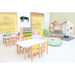 La Sedia è realizzata in legno di faggio naturale e compensato, verniciato con idropitture ecologiche. La lavorazione di alta qualità garantisce un uso a lungo termine e il colore caldo animerà qualsiasi stanza. Oltre al comfort di seduta, la sedia garantisce una piacevole sensazione tattile grazie alla superficie satinata al tatto della seduta e dello schienale. Le estremità arrotondate del telaio in legno non rappresentano un rischio di lesioni o infortuni ai bambini che la utilizzano. Dim.cm 31x27 Altezza seduta: 31 cm.