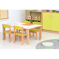 La Sedia è realizzata in legno di faggio naturale e compensato, verniciato con idropitture ecologiche. La lavorazione di alta qualità garantisce un uso a lungo termine e il colore caldo animerà qualsiasi stanza. Oltre al comfort di seduta, la sedia garantisce una piacevole sensazione tattile grazie alla superficie satinata al tatto della seduta e dello schienale. Le estremità arrotondate del telaio in legno non rappresentano un rischio di lesioni o infortuni ai bambini che la utilizzano. Dim.cm 31x27 Altezza seduta: 31 cm.