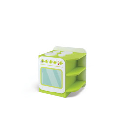 Un gioco in legno della collezione Minty che imita una cucina. Le stampe sulla porta lo rendono bellissimo e realistico. Può essere combinato con altri giochi di questa serie, creando un'isola al centro della stanza, contro il muro o separandoli completamente e posizionandoli in diverse parti della stanza. Dim cm 50x41x54h.