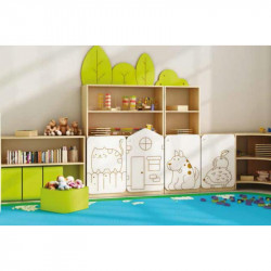 Realizzato in conglomerato nobilitato ligneo di classe E1 con bordi in ABS antinfortunistico. Decoro in MDF laminato, sagomato e decorato con angoli arrotondati. Dim. cm 100x40x140h.