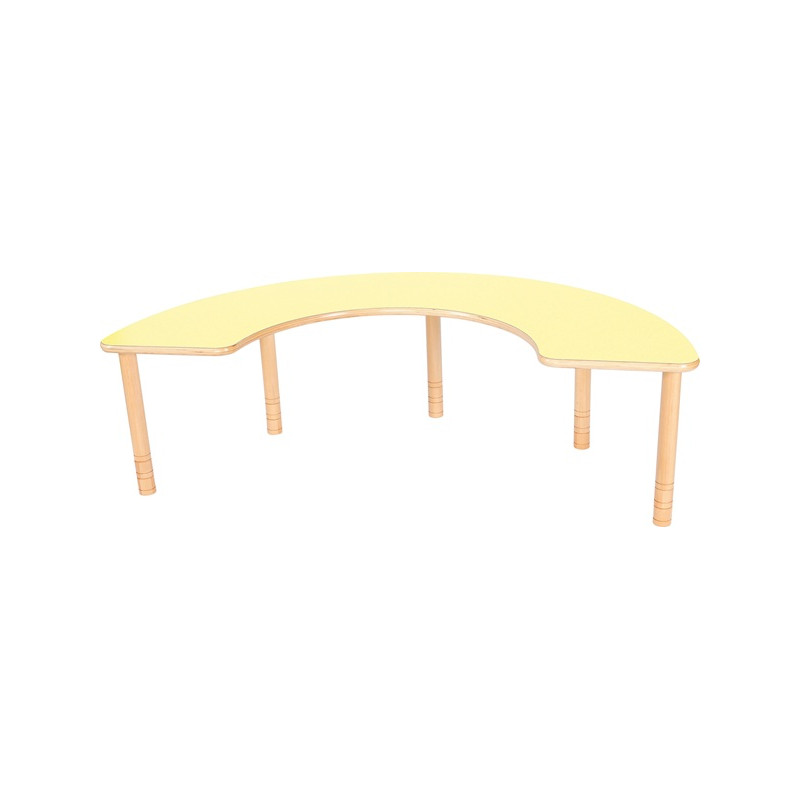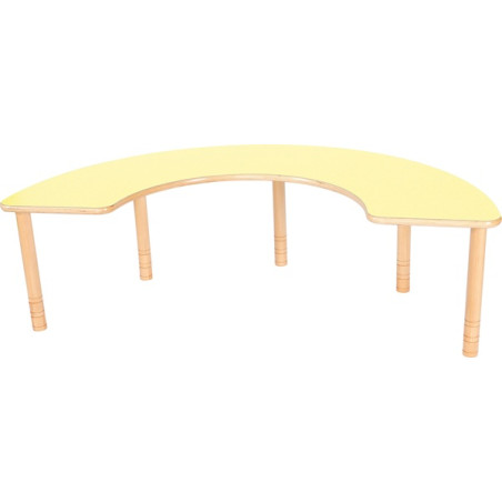Tavolo fino a 6 posti che permette di creare uno spazio funzionale per giocare e lavorare. Piano realizzato in conglomerato nobilitato ligneo, spess. 25 mm, placcato su entrambe le facce con laminato plastico lavabile, antigraffio e antiriflesso, finitura faggio, con bordo antinfortunistico in ABS. Gambe in legno massello tornito, verniciato al naturale, di diam. 43 mm, con altezza regolabile di 40-46-52-58 cm, grazie agli appositi aggiunti che permettono di adattare il tavolo al bambino, garantendo il massimo conforto. Dim. cm 197x90.